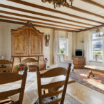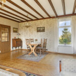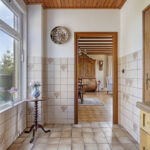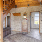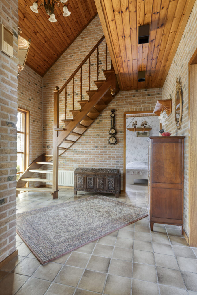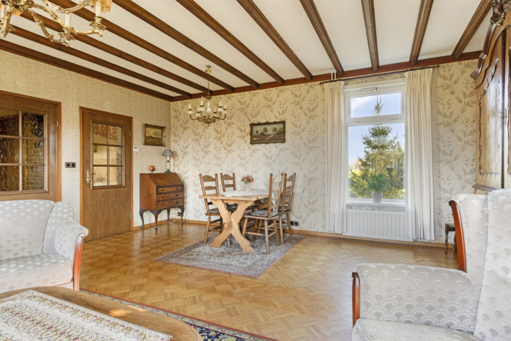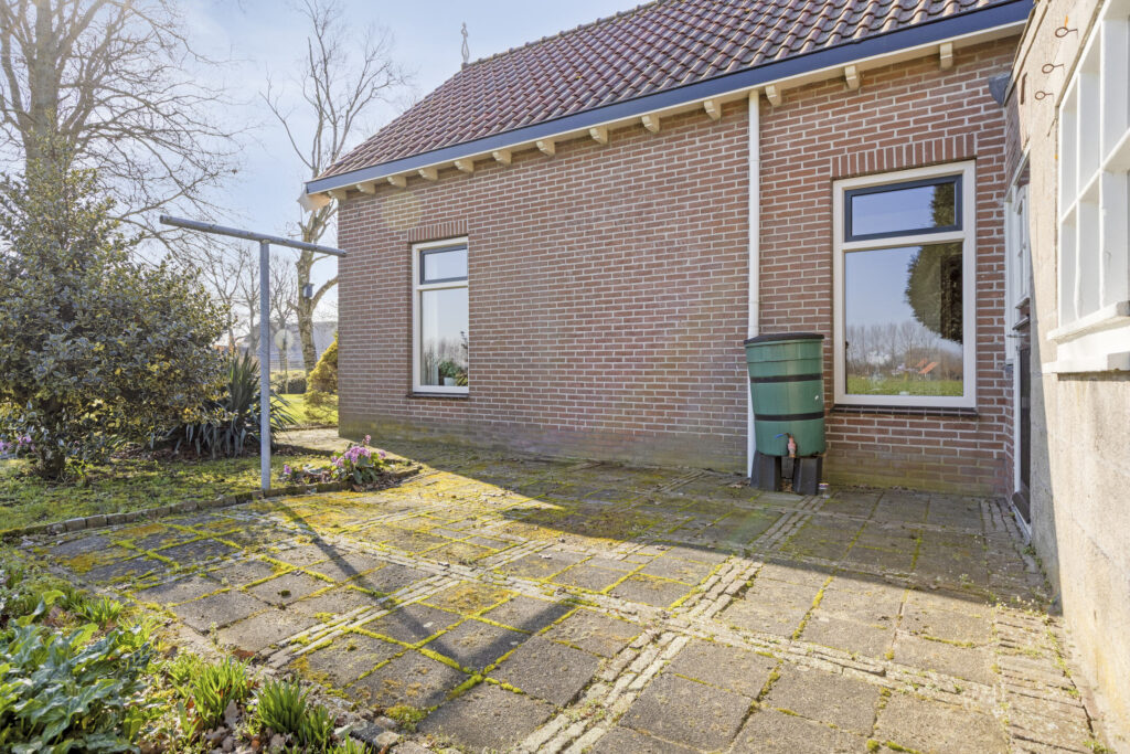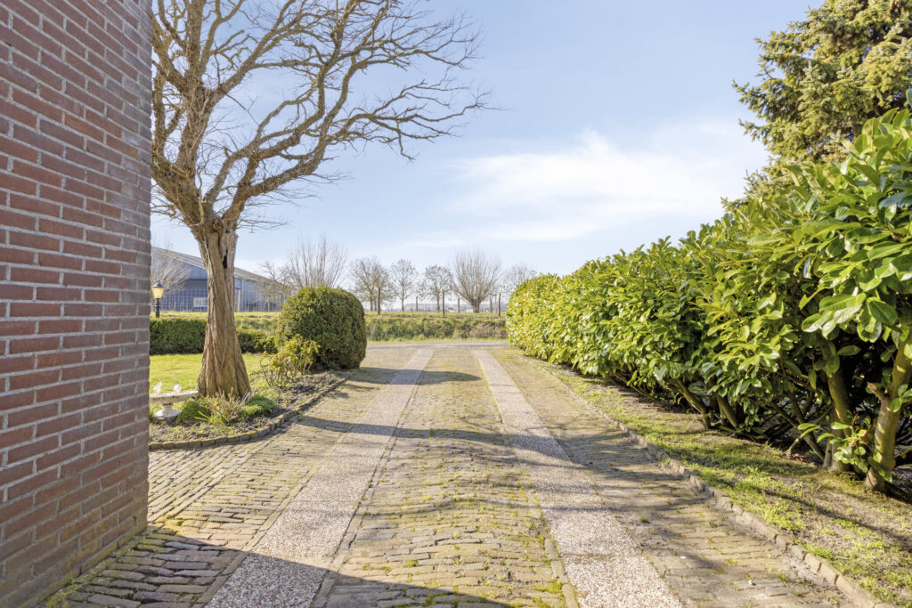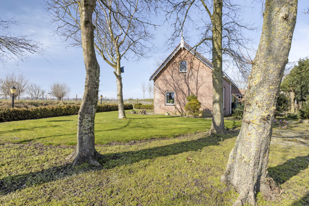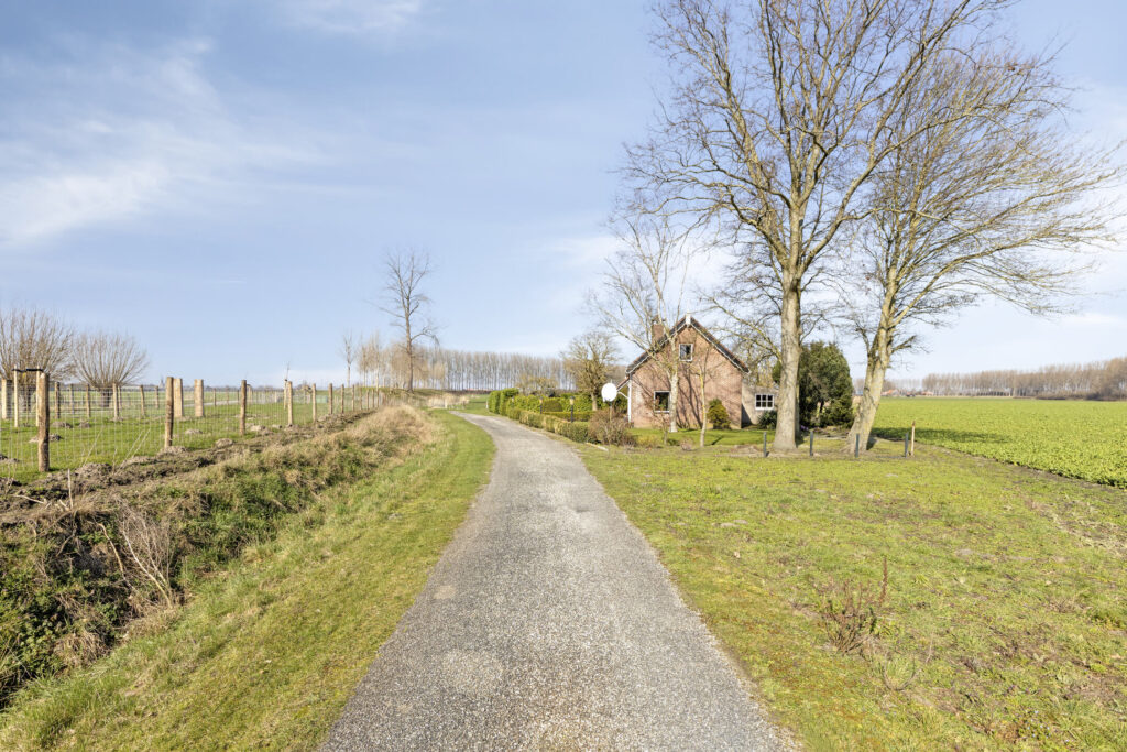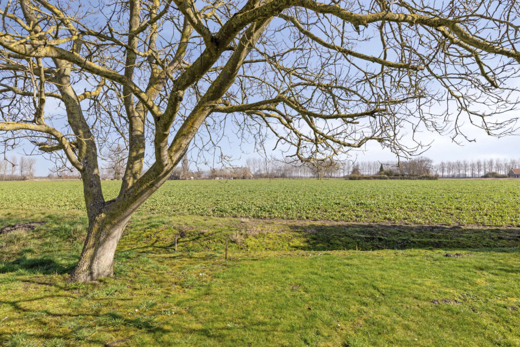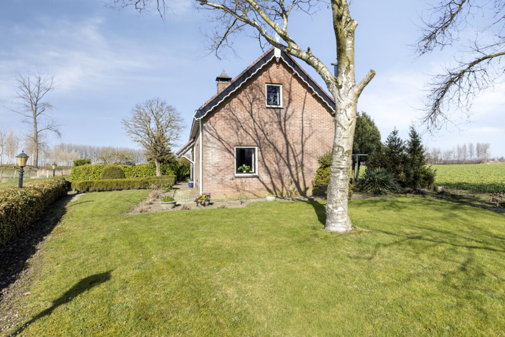 Zodra je vanaf de hoofdweg de zijweg inslaat richting je eigen perceel, valt de hectiek van de dag direct van je af. Je parkeert de auto op je eigen oprit en stapt via de voordeur de ruime hal binnen. Hier vind je de meterkast (7 groepen en dubbeltariefmeter), een radiator en een toilet met fonteintje. Vanuit de hal heb je toegang tot de belangrijkste vertrekken van het huis. De woonkamer is een absolute blikvanger. Door de vele raampartijen stroomt het daglicht van alle kanten naar binnen, maar het is vooral het uitzicht dat je zal raken. Aan de achterzijde kijk je vrij weg over de polders. De schouw met kachel vormt het hart van de kamer, waar je een sfeervolle zithoek creëert. Daarnaast is er meer dan genoeg plek voor een grote eettafel waar je urenlang kunt natafelen met het landschap als levend schilderij op de achtergrond.