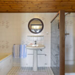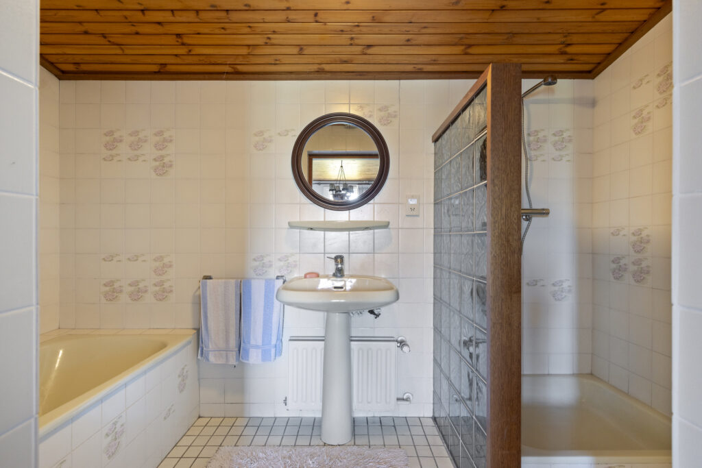 Wat deze woning extra bijzonder maakt, is het volledige leefprogramma op de begane grond. De eerste slaapkamer is ruim opgezet en beschikt over een eigen badkamer ‘en suite’. Deze badkamer is volledig betegeld en beschikt over een ligbad, een aparte douche, een wastafel en een radiator.