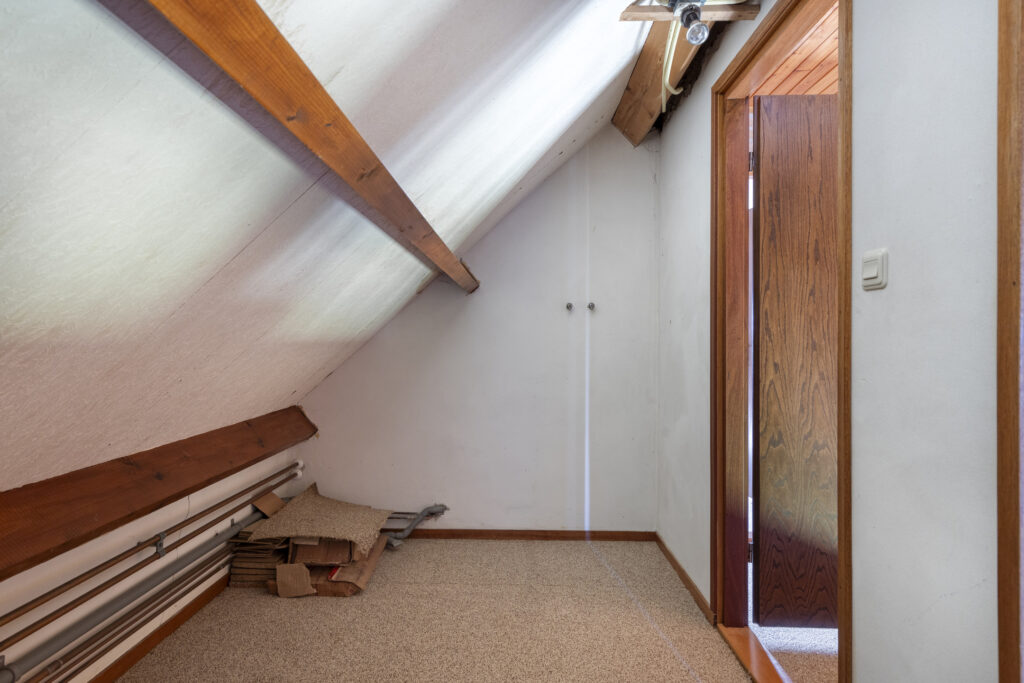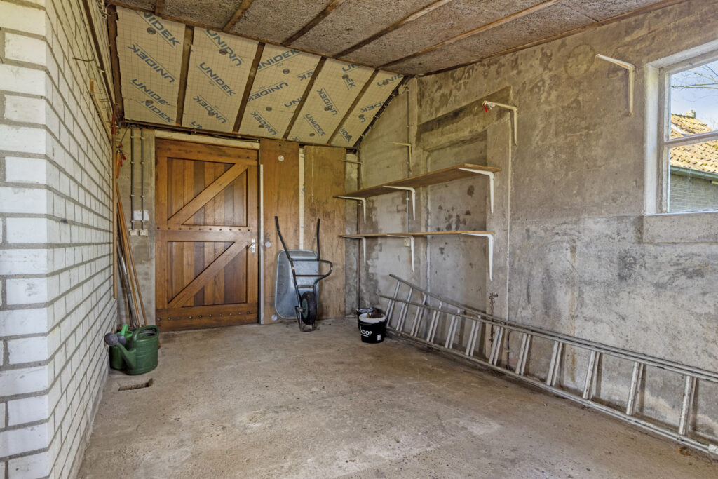 Grenzend aan de woonkamer vind je de dichte woonkeuken. De keukenopstelling in hoekvorm is eenvoudig. Vanuit de keuken heb je direct toegang tot de achtertuin, maar ook tot de inpandige berging. Deze ruimte is goud waard. Je bereikt hem zowel binnendoor als van buitenaf, wat het ideaal maakt voor hobby’s of de stalling van een auto. Zie je echter meer potentie? Wij zien hier dé kans om de woonoppervlakte aanzienlijk te vergroten. Denk aan een riante woonkeuken met kookeiland, een praktijk aan huis of een extra tuinkamer.